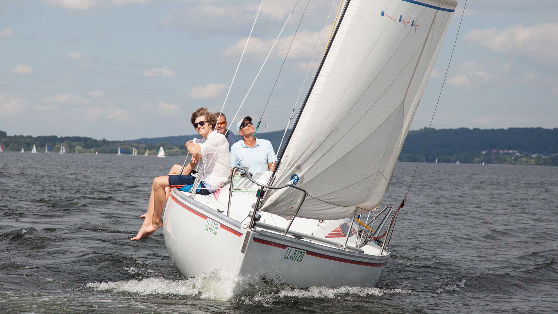 Für Segelbegeisterte bieten wir außerdem Segelkurse bis zum Erwerb des SBF Binnen (Segeln), Segeltraining, Segelevents mit erfahrenen Skippern auf unseren schnellen Yachten "Allegro" und "Exocet" zwei Beneteau First Class 8 an. Bequemes Cruising Segeln aber auch sportliches Spinnaker Segeln für bis zu 5 Personen, für Anfänger und auch Fortgeschrittene. Außerdem steht ein Katamaran F18 Hobie Cat Tiger zur Verfügung